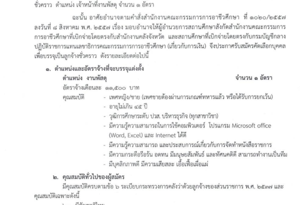 ประกาศรับสมัคร เจ้าหน้าที่งานพัสดุ 1 อัตรา