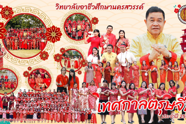 นายพงศ์กานต์ เอี่ยมสงคราม ผู้อำนวยการวิทยาลัยอาชีวศึกษานครสวรรค์ พร้อมด้วย…นายกฤษดา สง่าเนตร รองผู้อำนวยการฝ่ายบริหารทรัพยากรนายสืบศักดิ์ สุ่มอิ่ม รองผู้อำนวยการฝ่ายพัฒนากิจการนักเรียนนักศึกษานายกิรัณ อาสุระ รองผู้อำนวยการฝ่ายแผนงานและความร่วมมือนางสาวกัญญณัฐ พงษ์ฐณวัฒน์ รองผู้อำนวยการฝ่ายวิชาการพร้อมด้วยคณะครู บุคลากรทางการศึกษา ร่วมถ่ายภาพเทศกาลตรุษจีน ประจำปี 2569 เพื่อร่วมสืบสานวัฒนธรรมอันดีงาม เนื่องในเทศกาลตรุษจีน ประจำปี 2569